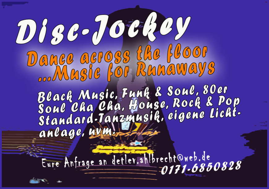 Lasst Euch von einer großen Auswahl von Songs und einer beeindruckenden Licht- und Nebelshow verzaubern. Mit meinem Profi-Equipment kann ich sowohl in kleineren wie auch in größeren Räumlichkeiten für eine ausgelassene Partystimmung sorgen. In Bezug auf Eure musikalischen Vorlieben können wir das Programm des Abends gerne abstimmen.